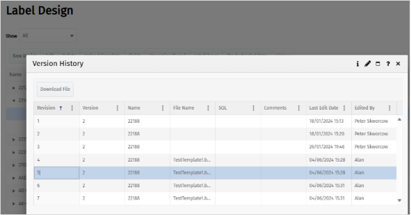 When you have a product label version that’s in draft, you can keep revising the template file (label design version) that is used. This means that whilst the product label version is in draft, it could have several revisions of the design associated with it. You may want to go back to an earlier revision, for example, if you find the latest one not working as planned.