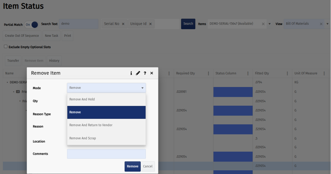 The change is especially important for users doing loss analysis, as it allows them to relate the removal of an item directly to its subsequent scrapping, improving traceability and reporting.