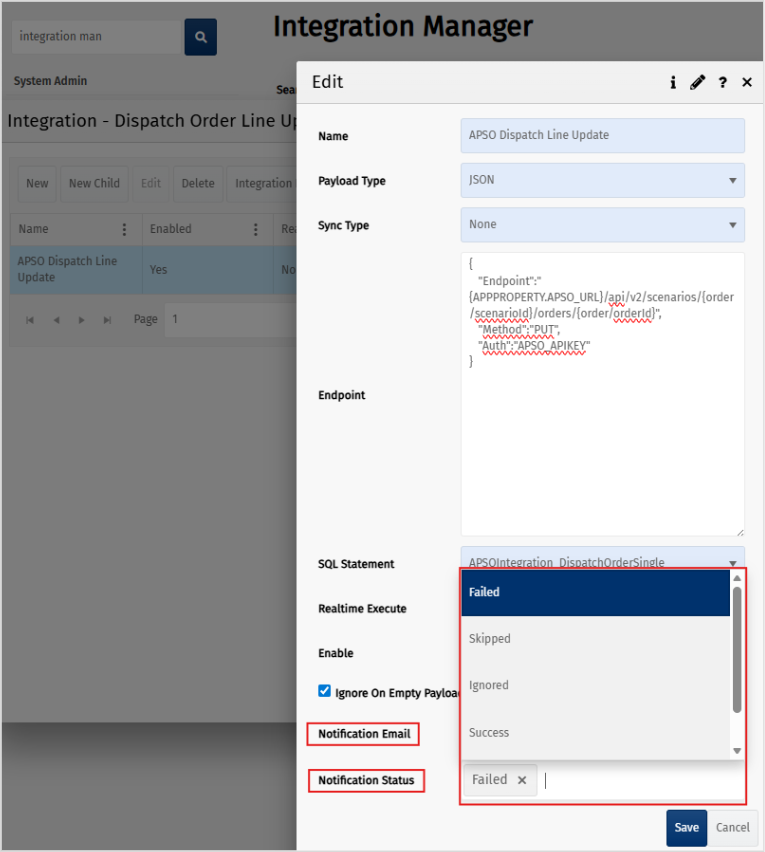 Email notifications on integration manager