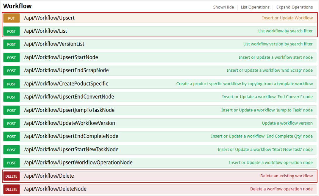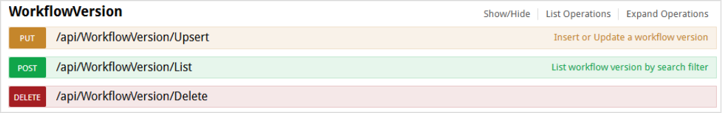 Moved the api/WorkflowVersion/List upsert under the new WorkflowVersion section. Also added upsert and delete endpoints.