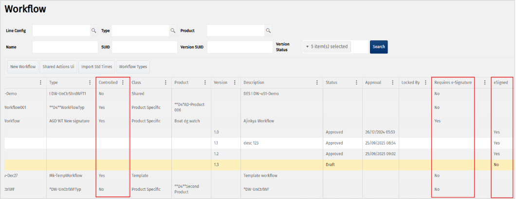eSigned: Indicates if the version was signed (Yes / No / N/A (N/A if eSignature is not required)).
