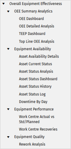 The “OEE Analysis” report has been renamed to “Top Line OEE Analysis” which displays a summary report for OEE.