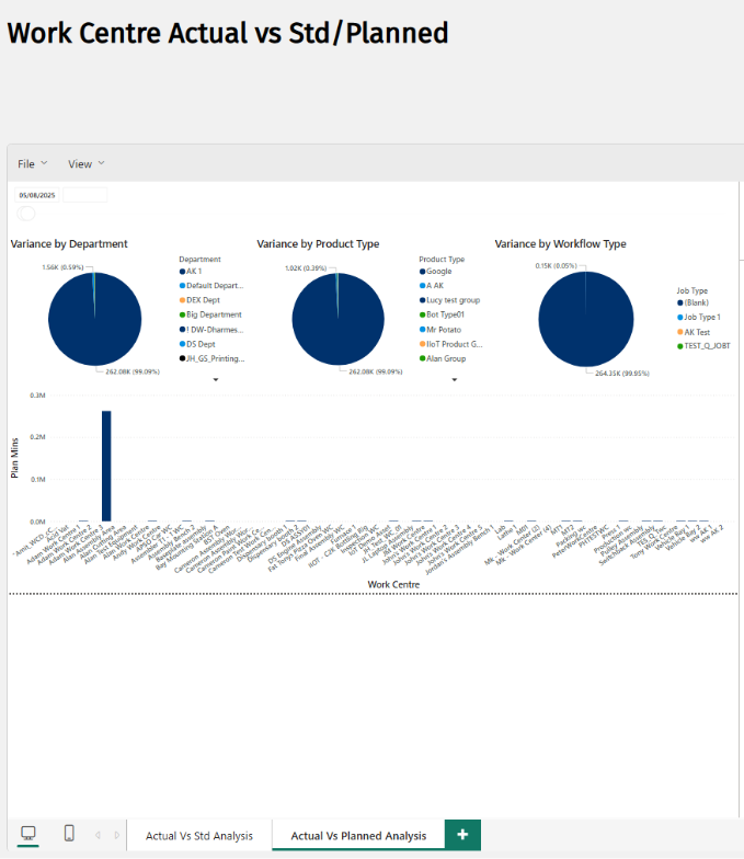 Additional tab for Actual vs Planned on Work Centre Actual vs Standard Report