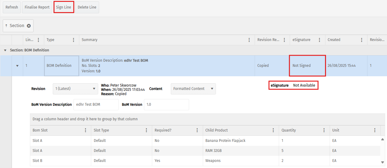 Lines can also be signed through an explicit action in a workflow. For more information, see the Review and Sign eCHR Workflow Action documentation.