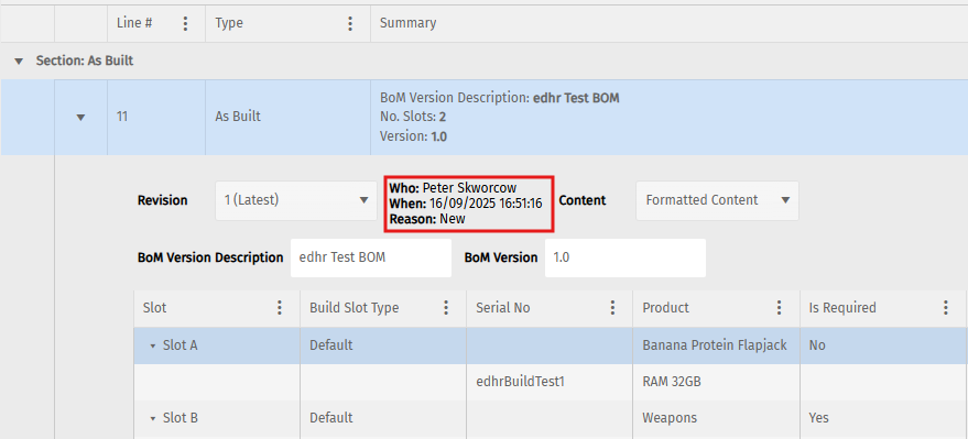 Expand the eCHR Line to display the detailed information included in the eCHR including all revision of that information. The content defaults to a human-friendly format (Formatted Content) of the data in eCHR that has been captured so far.
